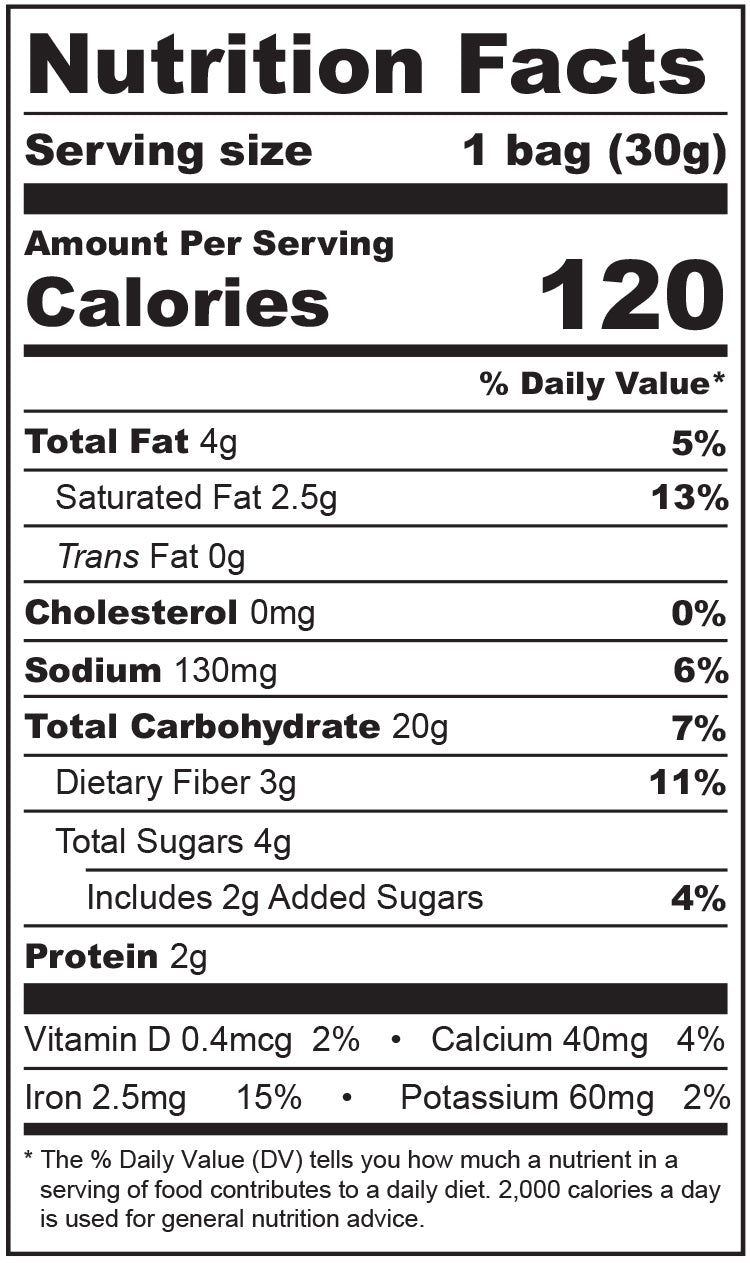 COCONUT OIL, PREBIOTIC CORN FIBER, BROWN SUGAR, MAPLE SUGAR, ACACIA FIBER, CINNAMON, NATURAL FLAVOR, ROSEMARY EXTRACT (SUNFLOWER OIL, ROSEMARY EXTRACT), SEA SALT.